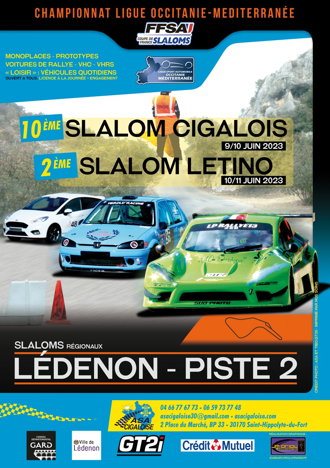 Venez découvrir l'expérience sportive unique que seule L'ASA CIGALOISE peut vous offrir. Nous organisons le slalom Cigalois le dimanche 27 Juillet 2025 sur la piste 2 du circuit de LEDENON, département du Gard. Contactez-nous dès aujourd'hui pour plus d'informations .